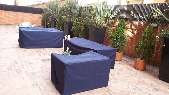 Forros para muebles y enseres de exterior. Confección A medida con mínimas costuras y muy resistente a desgarros, rozaduras. Nuestros forros para muebles de jardín no son forros convencionales son forros de calidad a medida, según la necesidad de nuestro cliente ya que no todos los muebles de jardín son iguales ni están fabricados con el mismo material. Disponemos variedades de colores y lonas complementando la confección, con cremalleras, velcros y amarres,etc.
